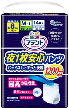 - アテント 夜1枚安心パンツ パッドなしでずっと快適 M~L男女共用 14枚