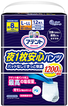 - アテント 夜1枚安心パンツ パッドなしでずっと快適 L~LL男女共用 12枚