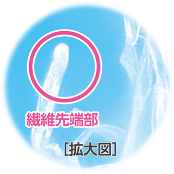 コットン繊維の先端が丸くなっていて肌への刺激が少なく安心です。