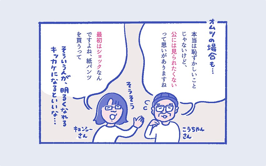 キョンシーさん自由になれるっていうのが、明確にわかる方向になればいいと思います。最初はショックなんですよね、オムツを買うのは。だからこそ、ちょっとでも気持ちを明るくしてもらえるものができたらいいですよね。