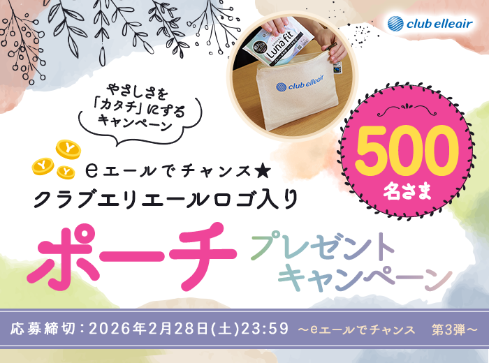 100eエールで応募しよう!抽選で500名さまにクラブエリエールオリジナルのポーチをプレゼント!