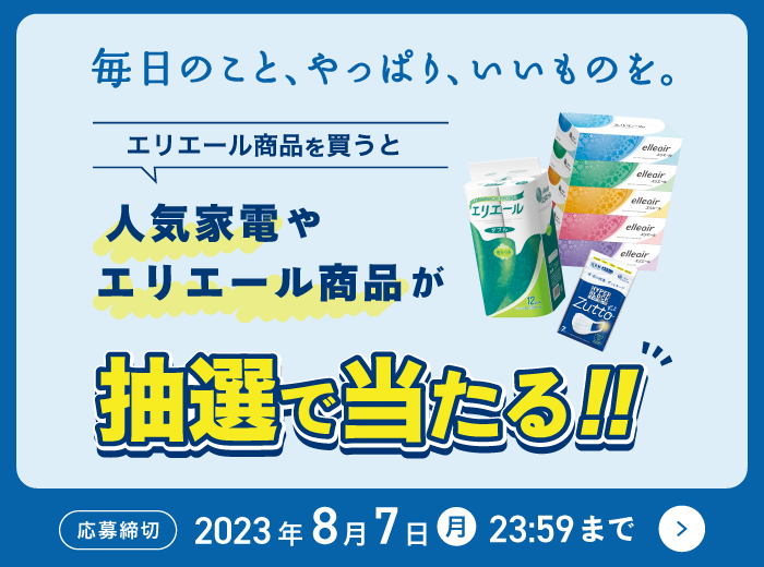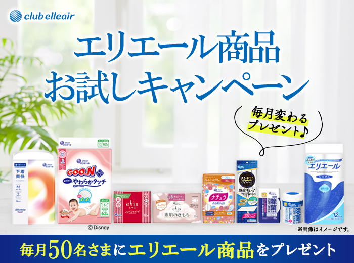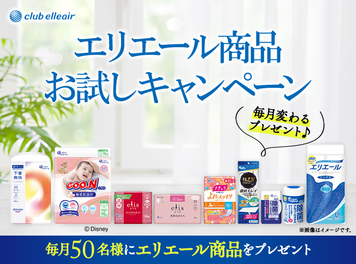 今月の賞品に関するクイズに答えると、50名さまにクラブエリエール事務局おすすめ商品をプレゼント!