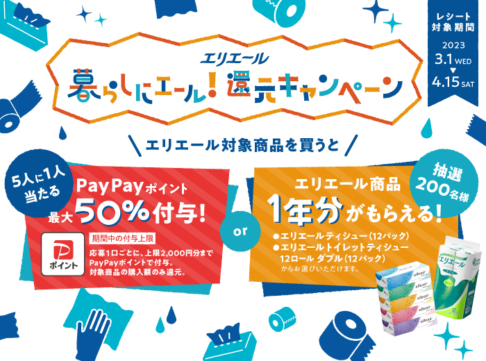 エリエールのトイレットティシュー1パック購入でポイントをGETし、応募してください。応募終了時の総ポイント数で100万円分のAmazonギフトコードを山分けいたします。