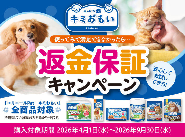 「キミおもい」対象商品を期間内(2026年4月~)に購入され、使ってみてご満足いただけなかった方へご返金いたします。