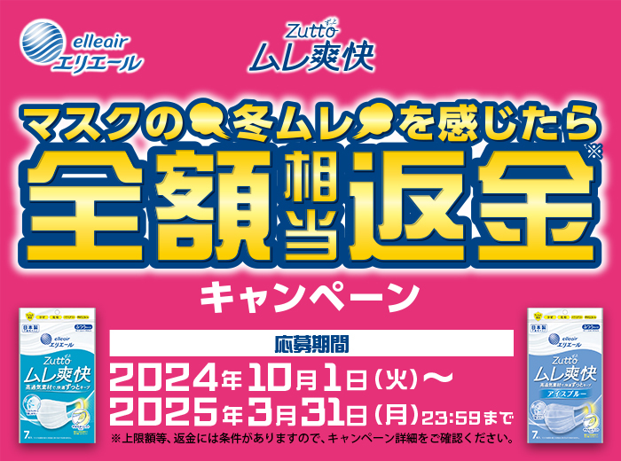 エリエールマスクムレ爽快 息苦しさ0へ!マスク乗りかえキャッシュバックキャンペーン