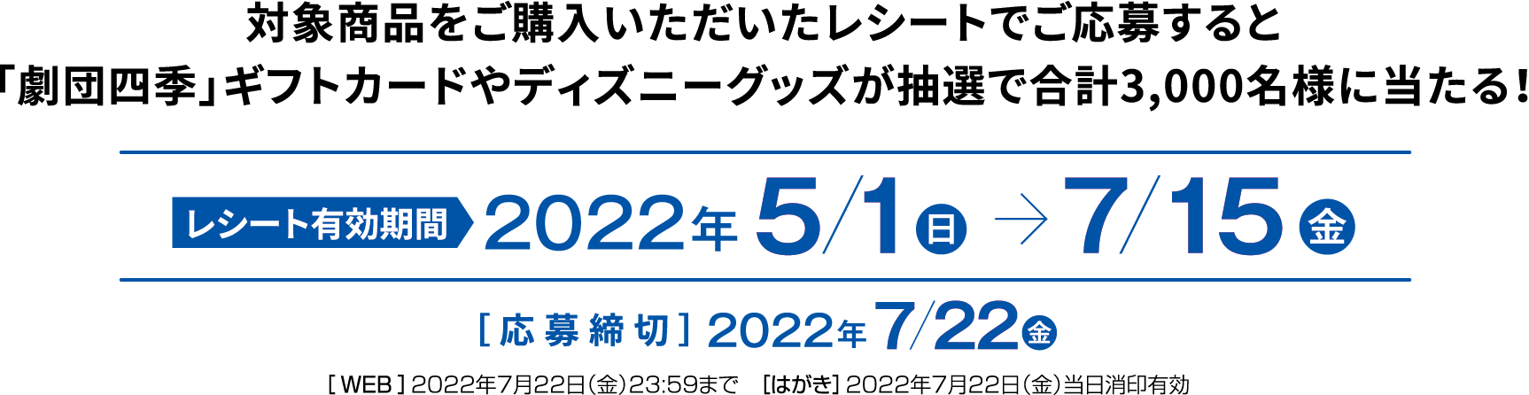 ※同じレシート、または納品書で、「WEB」「はがき」の重複応募は無効とさせていただきますので、ご注意ください。