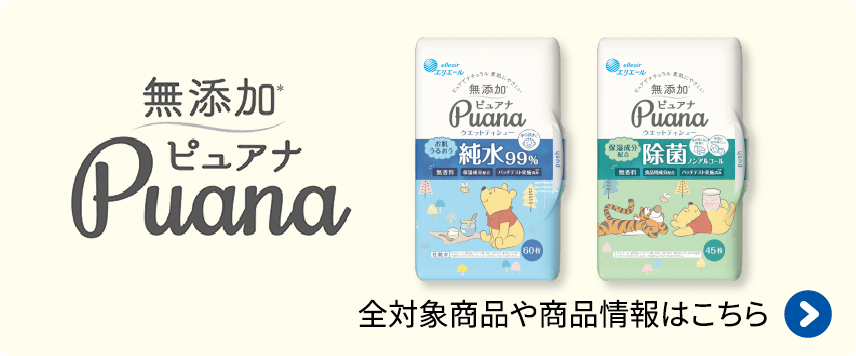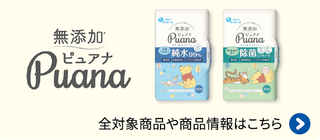 グ〜ンプラス、グ〜ンまっさらさら通気、グ〜ンおしりふき、ピュアナ(Puana)シリーズ