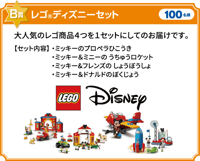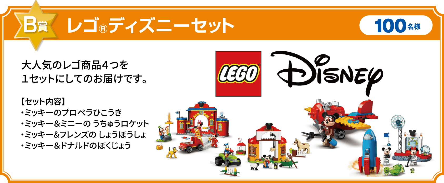 | 【B賞】 | レゴ®ディズニーセット | 100名様 |