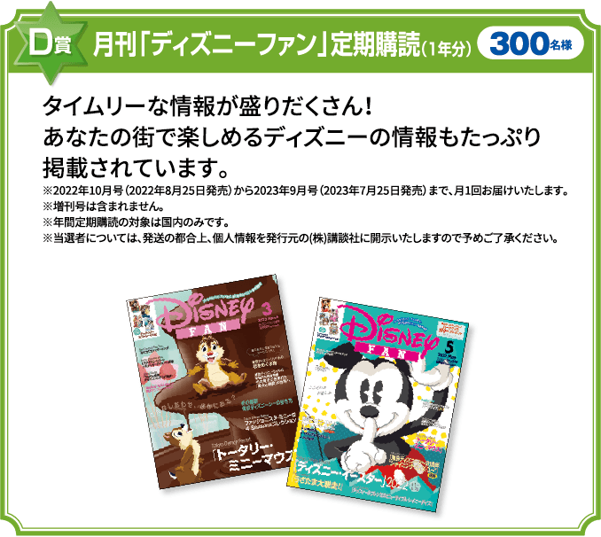 | 【D賞】 | 月刊「ディズニーファン」 | |