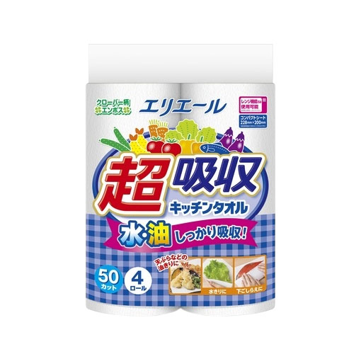 ①エリエール 超吸収キッチンタオル 50カット4ロール 1点