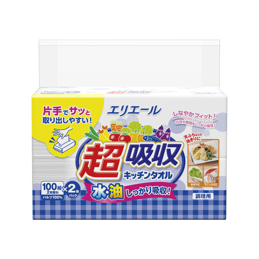 ②エリエール 超吸収キッチンタオル 100組200枚×2個パック 1点