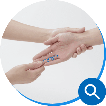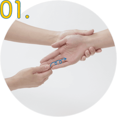指を1本1本指先から中心に向け、くるくると回すように触れていきます。関節部分は優しく触れます。