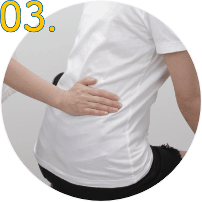 腰周辺を行う場合は、相手にやや前傾姿勢をとってもらいましょう。