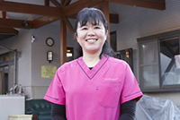 まずは手のタッチングです。指先からやさしく触れていきます。1本1本くるくると円を描くように丁寧に触れます。
