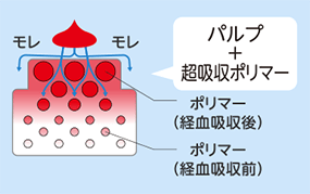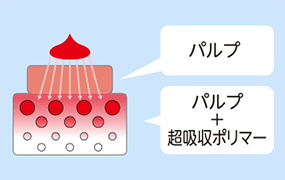 「経血引きこみスポット」でしっかり吸収し、ふんわりした肌ざわりの質感で快適な使用感を目指しています。