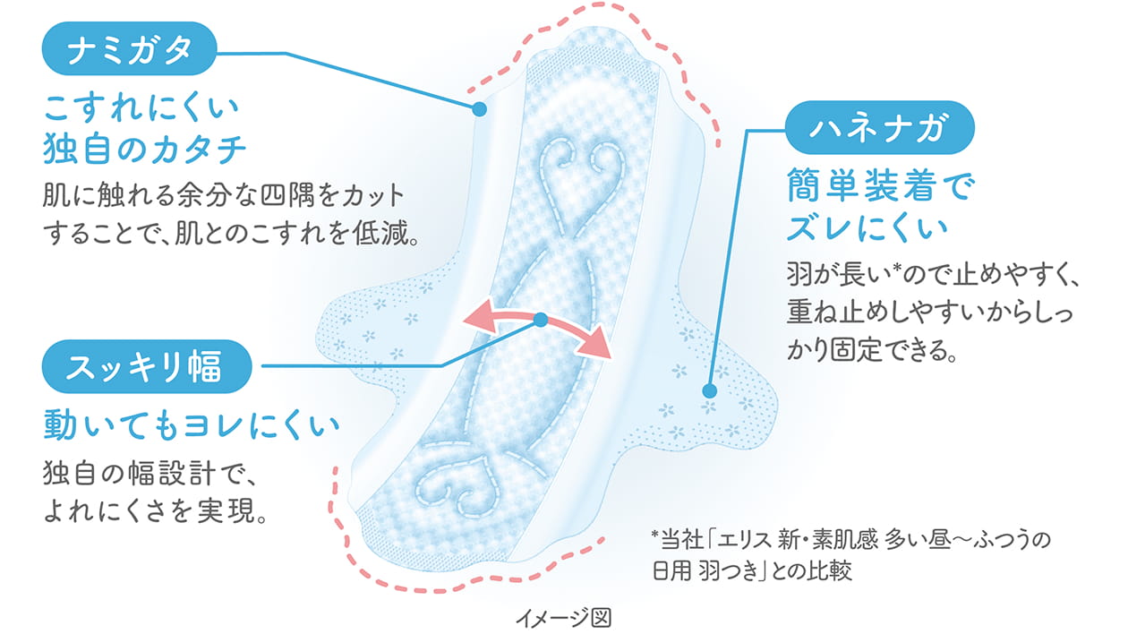 ナプキンのズレを低減し、快適ポジションをキープ。