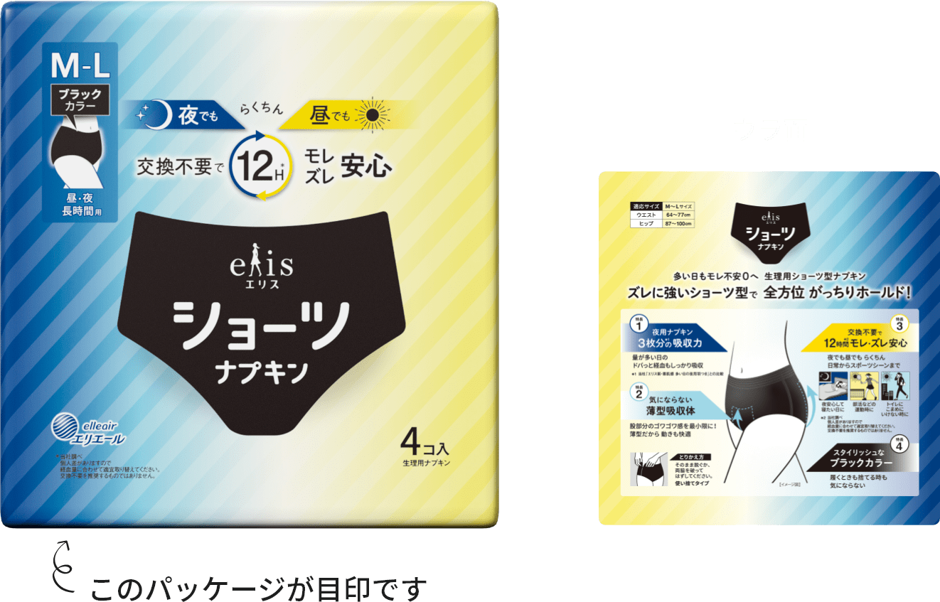 エリスショーツなら昼も夜も関係なく、履くだけで生理中の悩みを軽減。