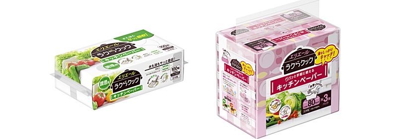 また、「エリエール ラクらクック パパッと手軽に使えるキッチンペーパー」は、手軽に扱いやすいコンパクトサイズで、使いやすさを考慮して厚みよりもやわらかさを重視したつくりとなっています。