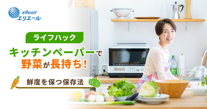 野菜の鮮度を保つためには、ぬれても破れにくく、吸水性に優れたキッチンペーパーを選ぶことが大切です。大王製紙の「エリエール 超吸収キッチンタオル」シリーズは、独自開発のエンボス加工の空間に水や油をしっかり吸収。さらに、ぬらして絞ってもやぶれにくい丈夫さも特長で、野菜の保存のさまざまなシーンに役立ちます。