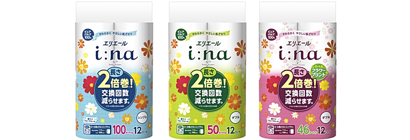 また、2021年より長巻タイプのトレンドに対応した「エリエール i:na(イーナ) シャワートイレ用2倍巻」も販売しています。