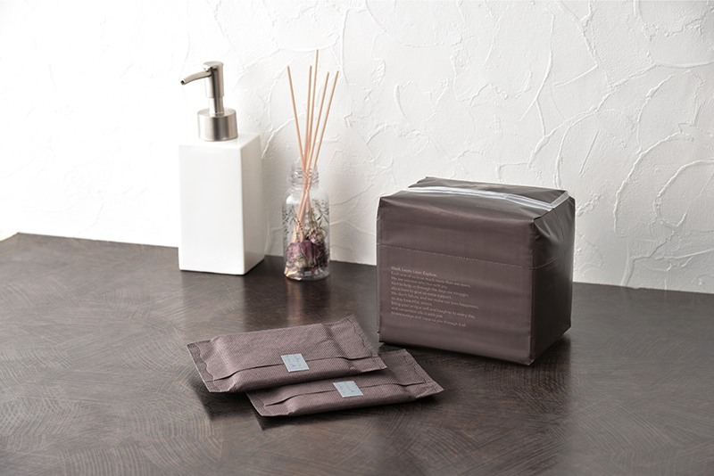 「エリス 素肌のきもち 超スリム シンプルデザイン」は、シンプルなパッケージデザインを採用した生理用品。個包装も、中身が透けにくい落ち着いた色味で、そのまま持ち歩いても目につきません。シートは「素肌のきもち 超スリム」シリーズと同様のもの。やわらかな肌当たりと、「ハネナガ・ナミガタ・スッキリ幅」にこだわった独自のカタチが特長です。