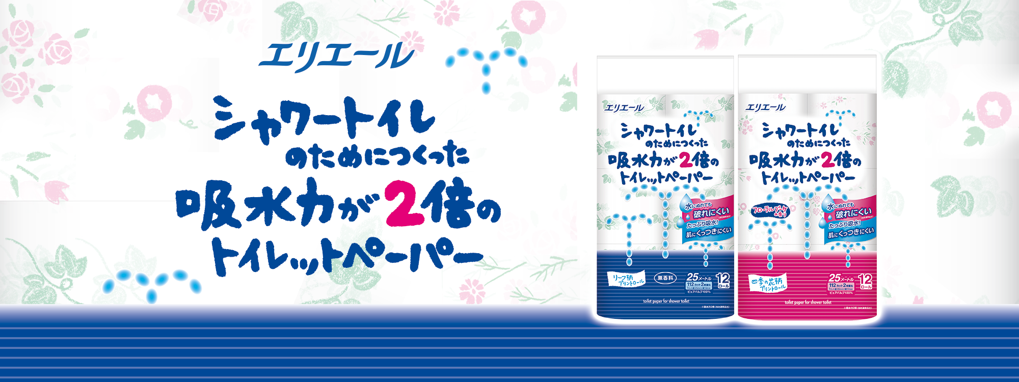 エリエール シャワートイレのためにつくった吸水力が2倍のトイレットペーパー フラワープリント香水付き