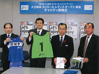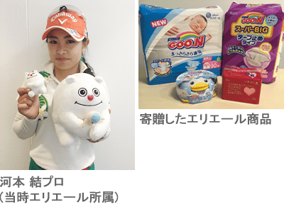 開催地愛媛県の子どもたちが笑顔で元気に育っていくことを願い、大会期間中のトータルバーディ数981個と同数のエリエール製品(グーン(ベビー用紙おむつ)、エリス(生理用品))を愛媛県下の児童福祉施設に寄贈しました。