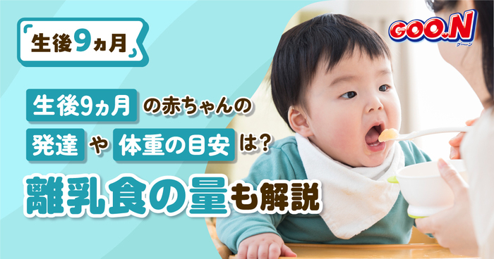 ずりばいからハイハイにステップアップするなど、身体機能の発達が感じられる生後9ヵ月の赤ちゃん。ここでは小児科医監修のもと、生後9ヵ月頃の赤ちゃんの身長・体重の目安など発達の特徴と合わせて、離乳食の量やスケジュール、授乳頻度などについて解説します。