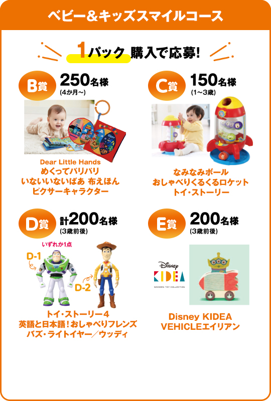 めくってパリパリ いないいないばあ 布えほん ピクサーキャラクター…250名様 - C賞 なみなみボールおしゃべりくるくるロケットトイ・ストーリー…150名様