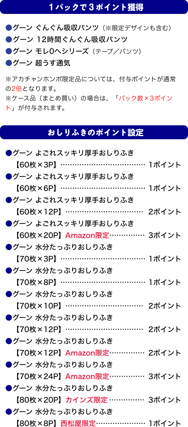 ※●グーンナイトシリーズ ●グーンスイミングパンツ ●グーンスーパーBIG ●グーンプラスシリーズ はポイント対象外となります。