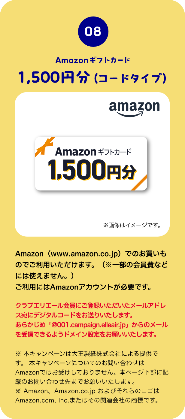 ※本キャンペーンは大王製紙株式会社による提供です。本キャンペーンについてのお問い合わせはAmazonではお受けしておりません。本ページ下部に記載のお問い合わせ先までお願いいたします。
