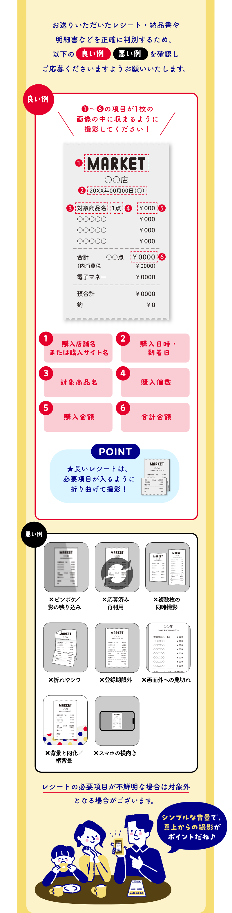 対象商品のお買い上げレシート全体を撮影し、