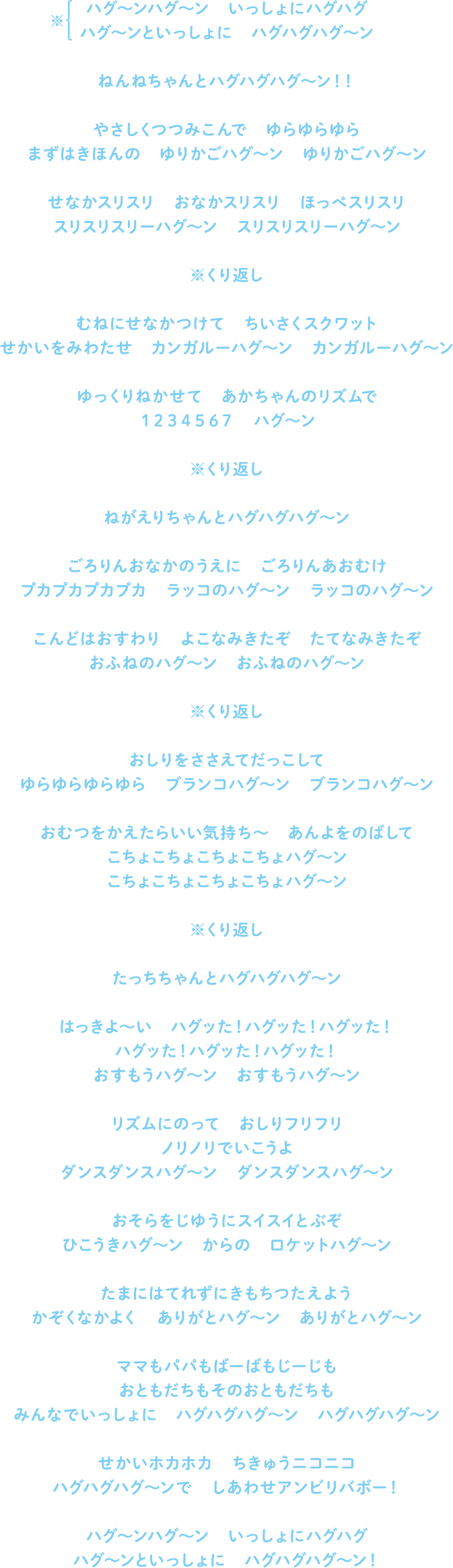 - 絵も曲も可愛い。ハグの大切さが伝わってきた。優しい気持ちになる。