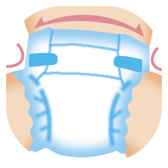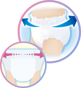 ウエスト周りが軽い力で伸びるため、動き回る赤ちゃんのおむつ替えもスムーズに
