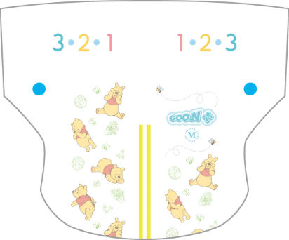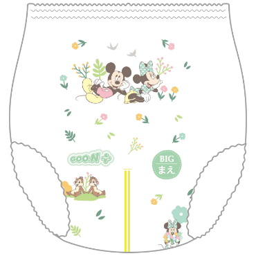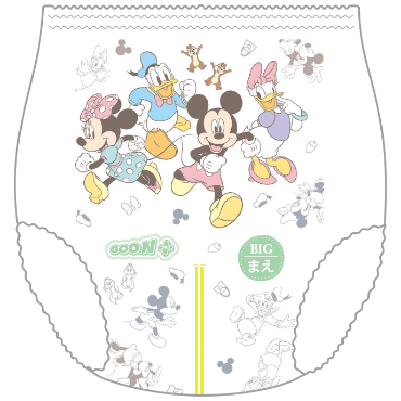 おむつのサイズが変わるごとにキャラクターも変わるので、成長を実感しながら楽しくおむつ替えができます! ※おむつイラストはイメージです。