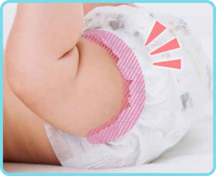 ぽこぽことしたやわらかい肌触りで肌にふれる部分を最小限※2に。凸凹でゆるうんちも広げずキャッチするから肌につきにくい。