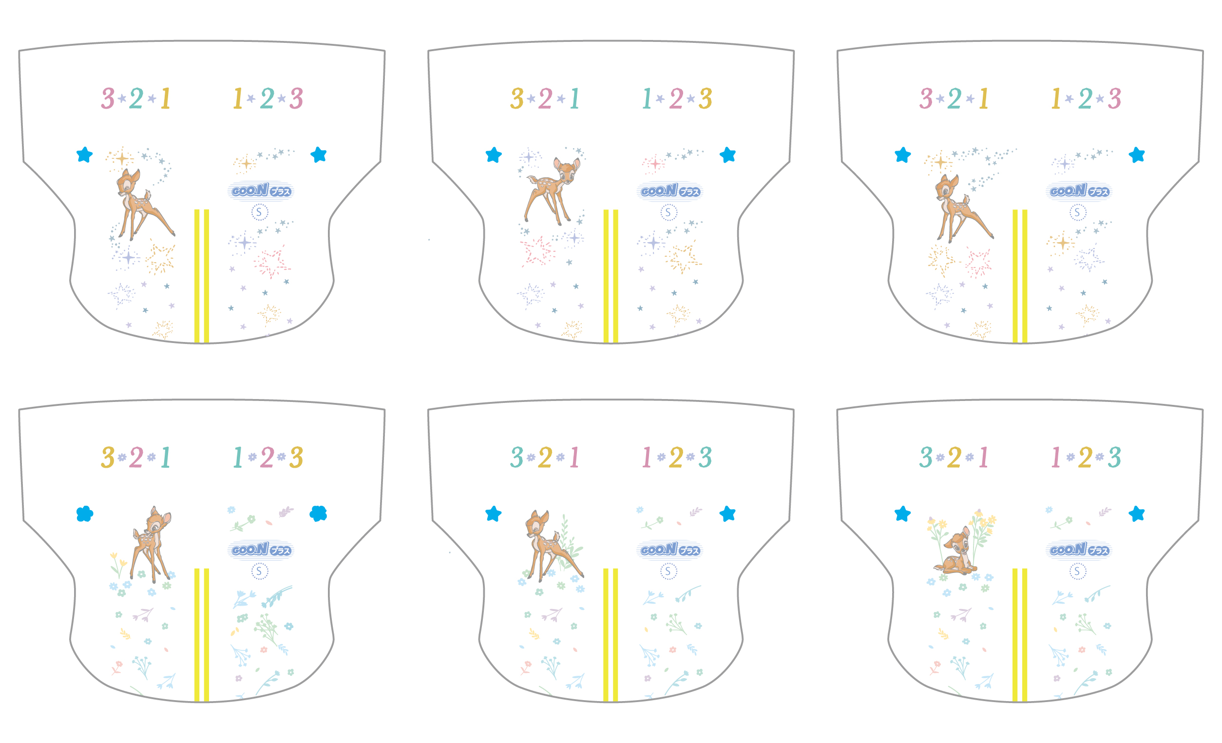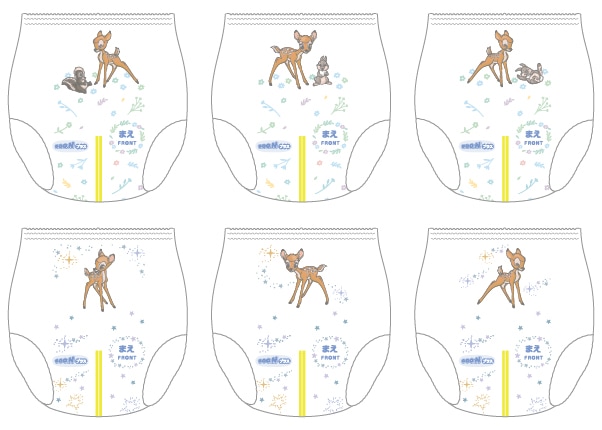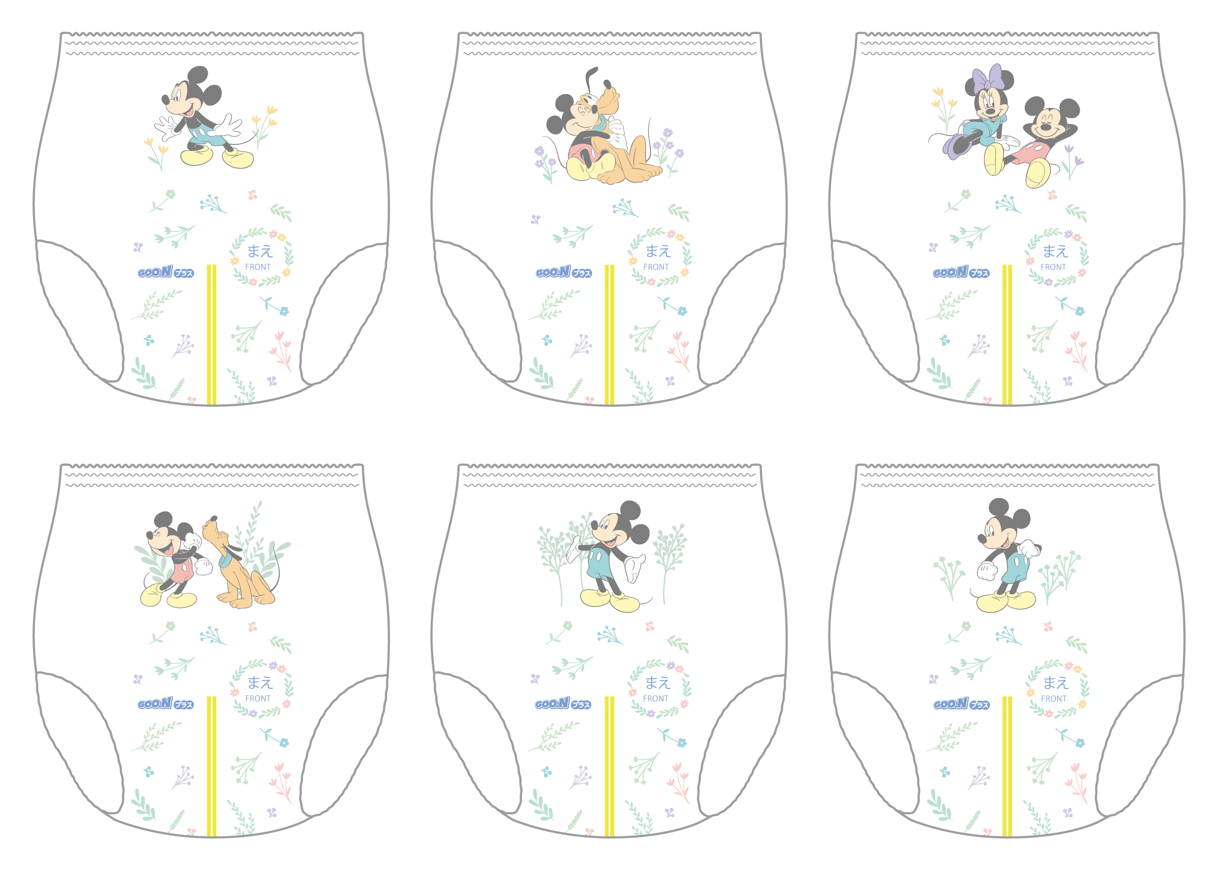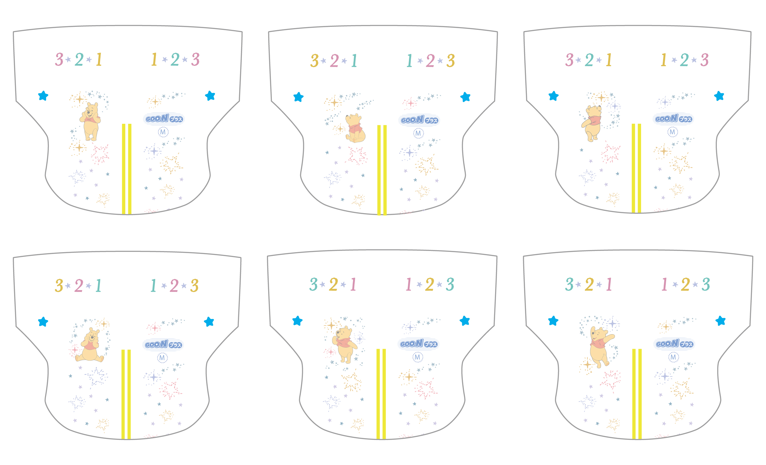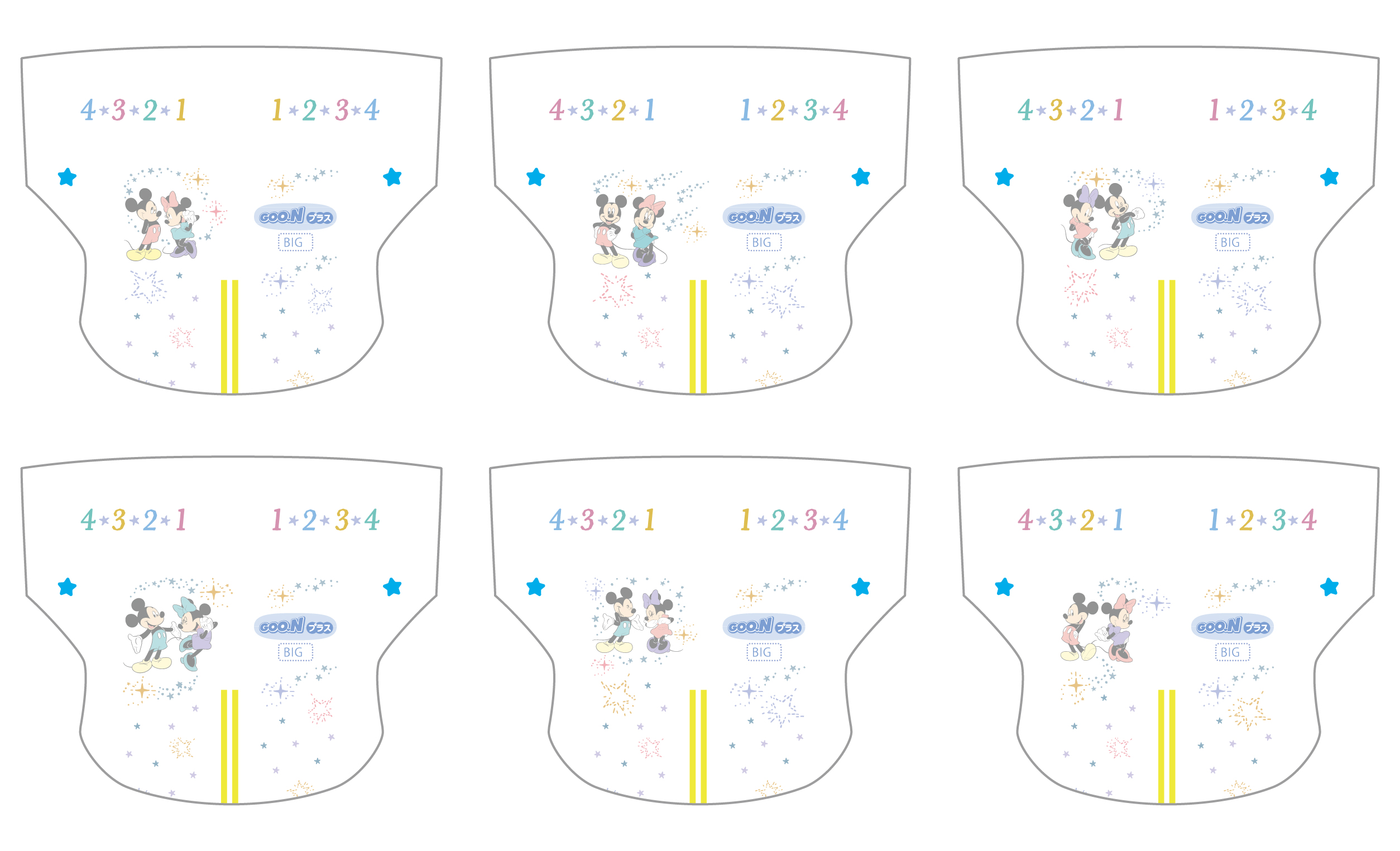 おむつのサイズが変わるごとにキャラクターも変わるので、成長を実感しながら楽しくおむつ替えができます! ※おむつイラストはイメージです。