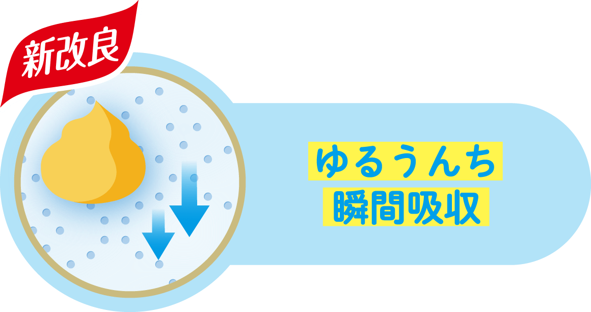 ぽこぽことしたやわらかい肌触りで肌にふれる部分を最小限※2に。凸凹でゆるうんちも広げずキャッチするから肌につきにくい。