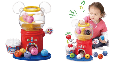 英語・数・色のお勉強や、いろいろなおしゃべり・音楽を楽しむことができるガチャマシーン型の知育トイ!英語⇔日本語モードの切替ができ、遊びながら自然と楽しく英語の音に親しませることができます。1歳~3歳頃まで長く遊ぶことができます。