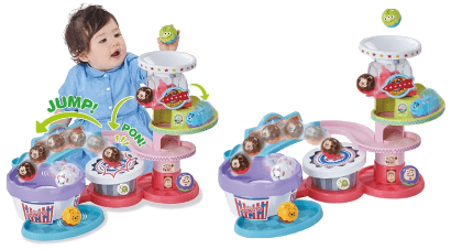 くり返し遊びたくなる、ボールアクショントイです。キャラクターボールがジャンプして回転カップに入る驚きのアクション!すべり台をコロコロ駆け降り回転カップに入る楽しい動き!キャラクターボールが6個付きです!