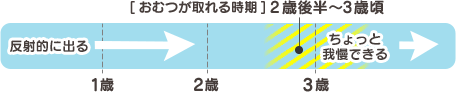 その間は過渡期で、子どもはオシッコの感覚をだんだんと学んでいく時期です。