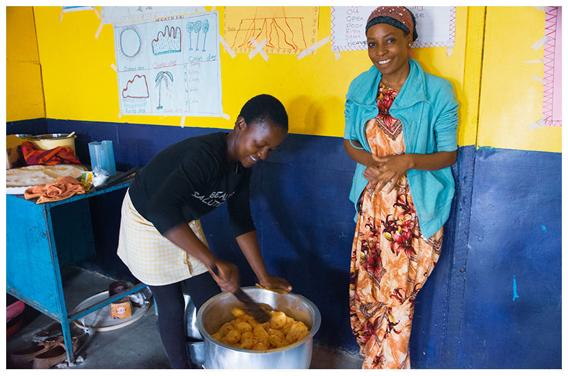 イベントの準備は朝早くから行われます。クリスマスを祝う特別な料理を振る舞うため、肉だけで64キロ、小麦粉52キロ、白米にいたっては205キロもの量が用意されます。そのほかにも、魚や野菜、飲み物など、年に一度のパーティーに向けて保護者や卒業生たちが手分けして料理をつくっていきます。みなさん「このあと校庭で行われるステージがとても楽しみです」と話してくれました。