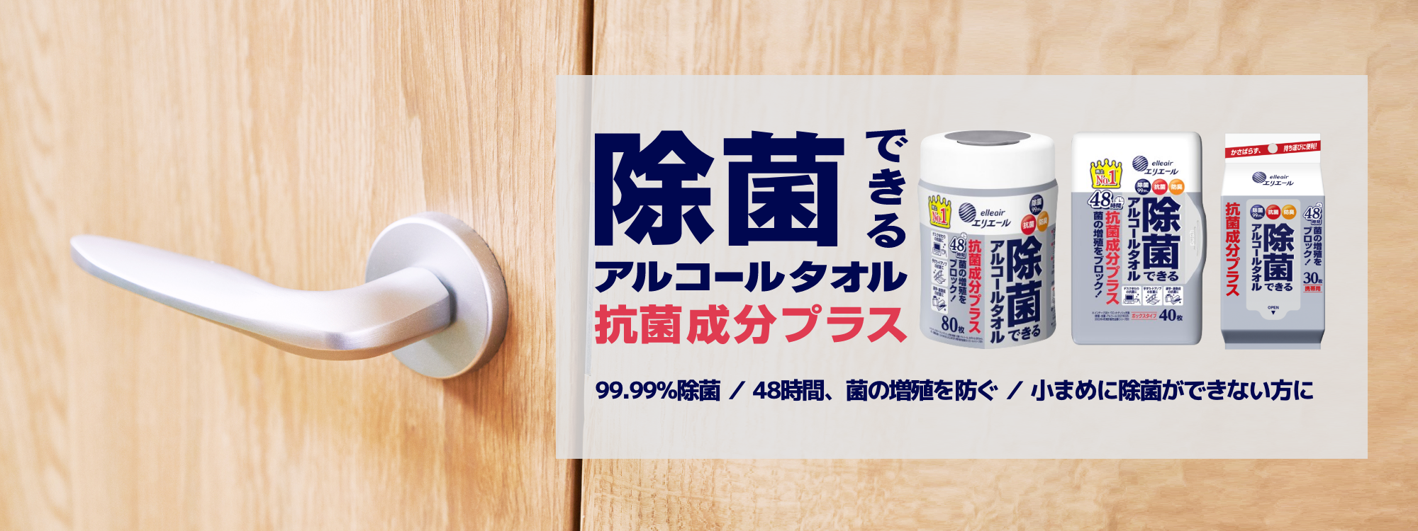 「除菌できるシリーズ」に共通する、安心の99.99%という優れた除菌効果。