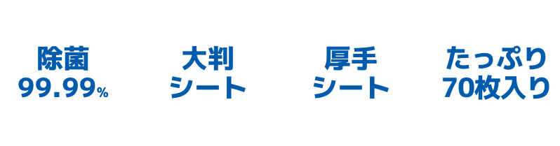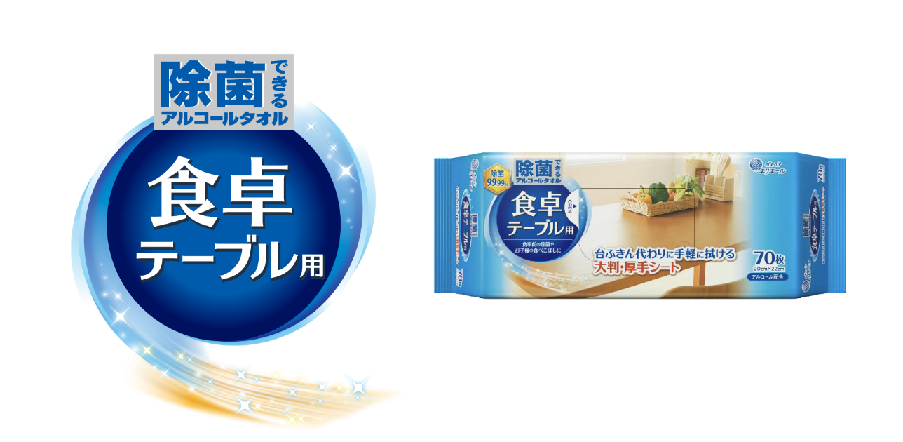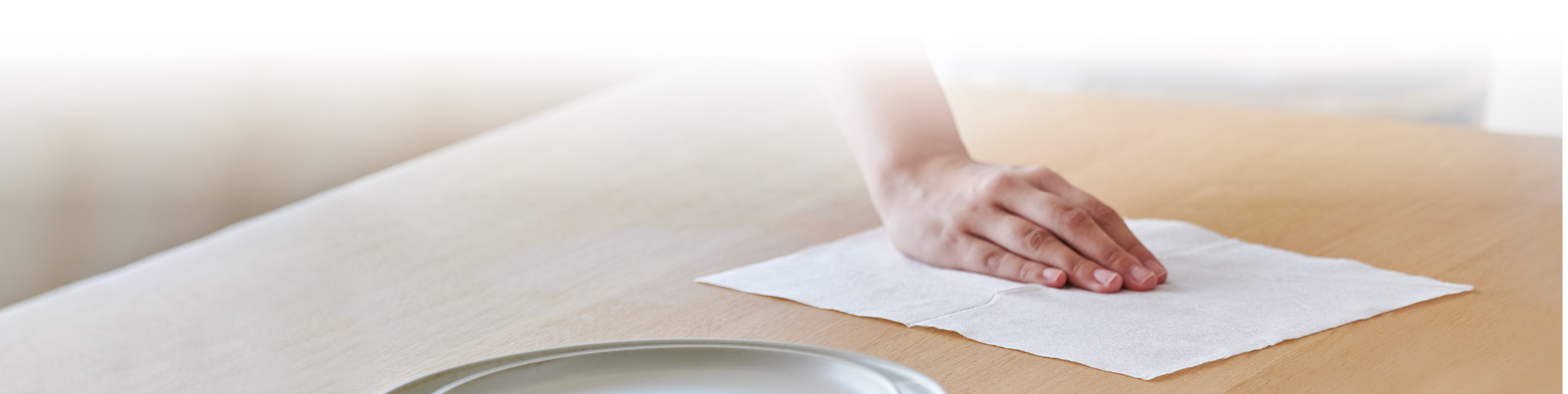 大判&厚手シート。1枚でもテーブルをしっかり拭き取り除菌できます。
