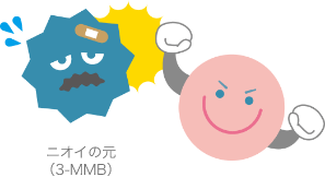 あの独特のツンとしたトイレのニオイを消すには、3-MMBの消臭対策が重要。専用の消臭剤を使用し、ニオイを元から除去する⾼い消臭効果が必要です。