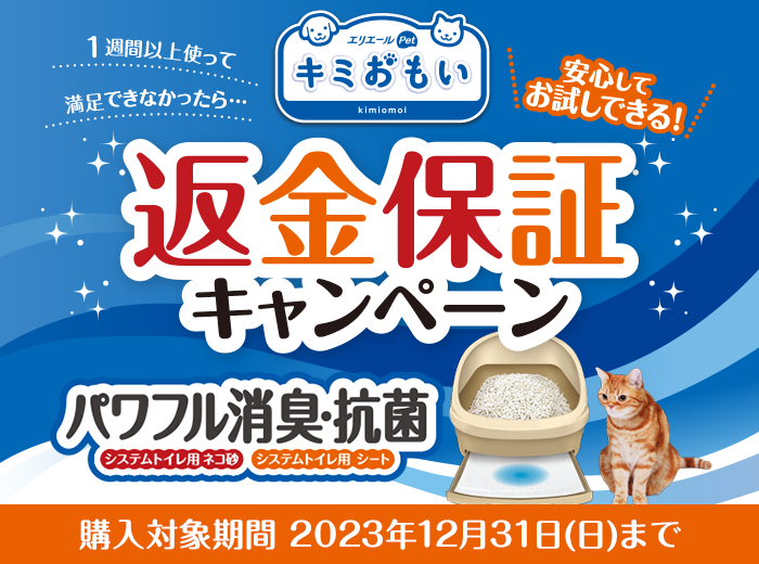 キミおもい システムトイレ用ネコ砂・シートへ乗り換え!必ずもらえるキャッシュバックキャンペーン