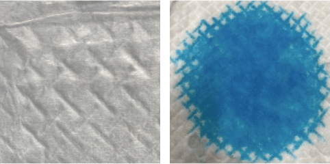 エンボスにより吸収体の密度が上がり、尿の通り道に。