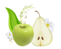 - すずらん、ローズのフローラルボディとさわやかなグリーンアップルが主体のフルーティフローラルの香り