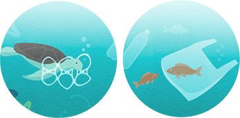 亀がビニール袋をクラゲと間違えて口にして、のどに詰まらせて死亡したり、プラスチック製の網が体に絡まりクジラや海鳥が死亡したりと言った事例が世界中で報告されています。 マイクロプラスチックを口にした魚を人間が口にすることで、体内に蓄積され、人体に影響を及ぼす可能性もあります。