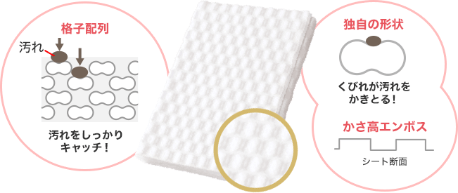 キレキラ!の独自の形状&格子配列ならしっかり汚れをキャッチ!